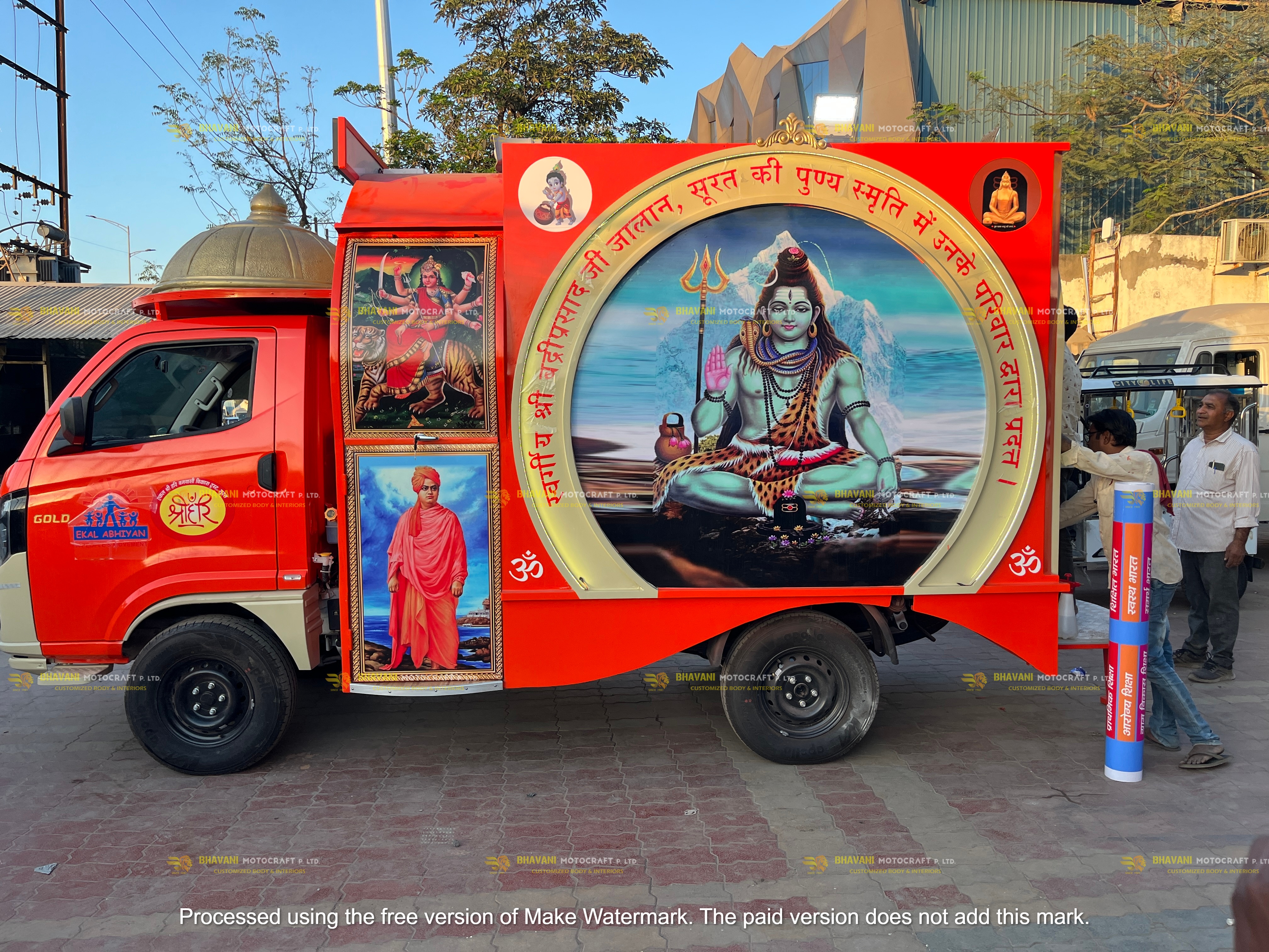 Religious-themed mobile platform fabricated for ceremonial or campaign use.